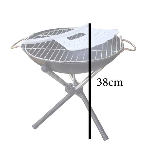 مخزن آتش این باربیکیو با ابعاد ۳۸×۳۸ سانتی‌متر از جنس ورق Cold Steel مقاوم ساخته شده است.
