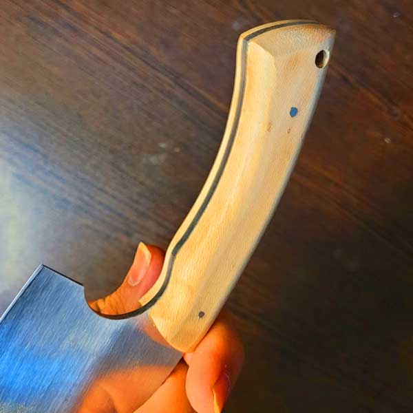 دستهی آن از چوب فندق طبیعی ساخته شده تا ضمن زیبایی و حس دستساز بودن، چسبندگی و کنترل عالی در دست داشته باشد.