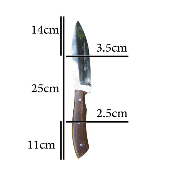 چاقوی شکار کمپینگ sk47 با طول کلی ۲۵ سانتیمتر و تیغه ۱۴ سانتیمتری، ترکیبی از قدرت و کنترل فوقالعاده را ارائه میدهد. دسته میکارتا با عرض ۲.۵ سانتیمتر 🖐️ باعث تسلط کامل دست در طول فعالیتهای طولانی میشود.